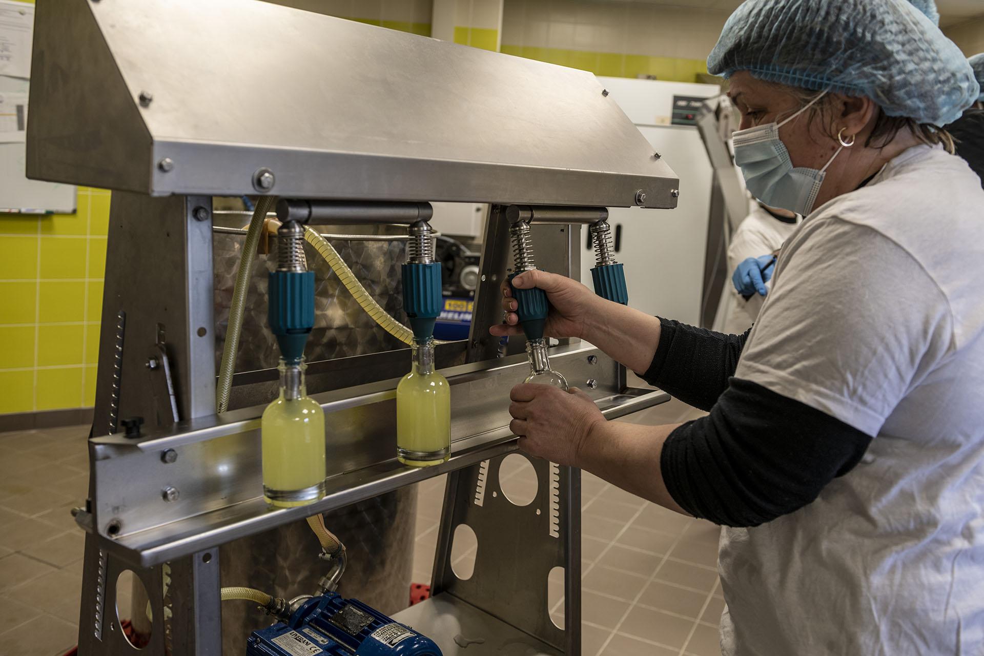 Mais surtout ces machines permettent aux différents travailleurs d’être le plus autonome possible sur leur poste comme le reconnaît Jean-Jacques Vuattoux : « Les équipes font tout ici de A à Z, quel que soit le produit que nous réalisons. Moi qui ai passé quinze ans en pâtisserie traditionnelle auparavant, franchement je trouve qu’il y a plus de sérieux et d’engagement ici. » Et ce n’est pas l’enthousiasme de Sandrine Barelli qui contredira son moniteur. Cette dernière, tout en utilisant une remplisseuse automatique, explique : « Je n’ai qu’à mettre les quatre bouteilles les unes à la suite des autres et la machine remplit parfaitement, c’est rapide et efficace. » Dans une logique d’amélioration continue, la cuisine va bientôt recevoir une nouvelle sertisseuse pour bouteilles afin d’optimiser cette opération qui reste chronophage pour l’équipe, la machine actuelle ne permettant de sertir qu’une bouteille à la fois.