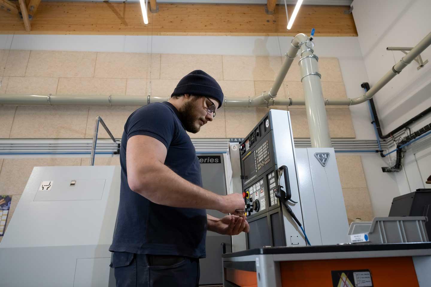 L’atelier s’articule autour de trois activités principales : la chaudronnerie, l’usinage et le montage. Dans les nouveaux locaux, les différentes zones bénéficient d’un espace clos dédié et ces salles ont été aménagées selon le principe de la marche en avant, pour simplifier les flux. Dans la première salle, les tôles en inox sont réceptionnées, stockées, pliées par une presse hydraulique de 170 tonnes, puis soudées, polies et décapées par microbillage ; dans la deuxième, elles passent par des centres d’usinage, le tour, la fraiseuse… Dans cet environnement industriel, le risque machine a été pris au sérieux.