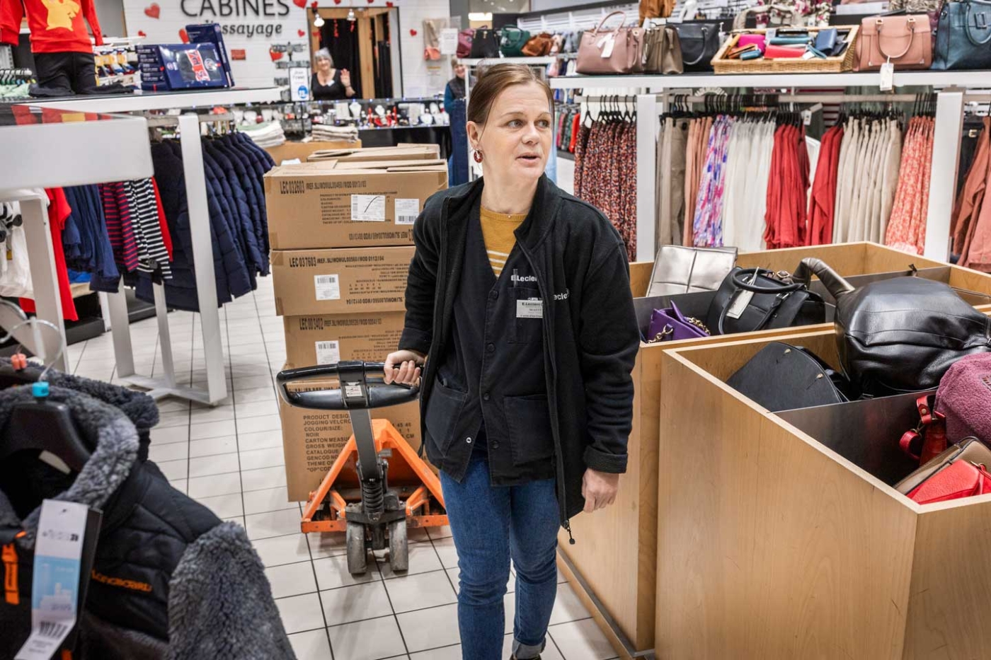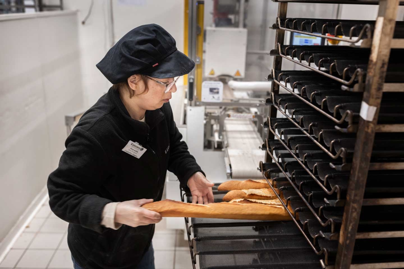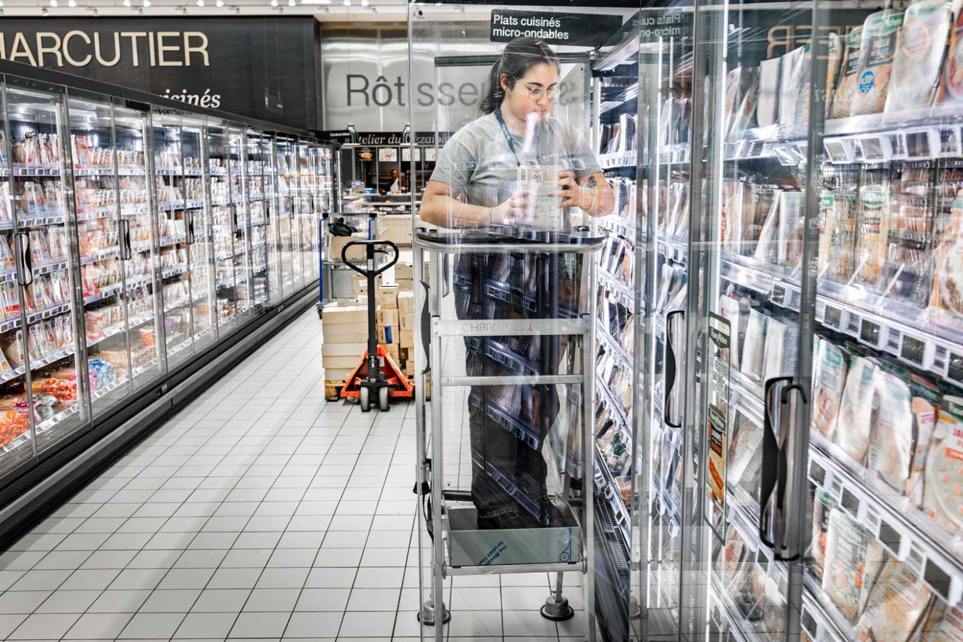 Le premier boulanger arrive à 3 h 15. « Tous les jours, on sort 1 000 à 1 200 baguettes tradition et 65 sortes de pains faits sur place. Les gens en ont rarement conscience quand on leur parle de grande distribution », souligne Raphael Roméro, boulanger adjoint. À lui seul, le secteur boulangerie-pâtisserie de l’hypermarché E. Leclerc de Saint-Paul-lès-Dax, dans les Landes, regroupe une vingtaine de personnes. Au total, il y a 380 salariés dans le magasin, pour 7 900 m2 de surface commerciale. Et si l’ouverture des portes aux clients a lieu à 8 h 30, beaucoup prennent leur poste bien plus tôt, exerçant des métiers dans lesquels les tâches répétitives et physiques sont légion.