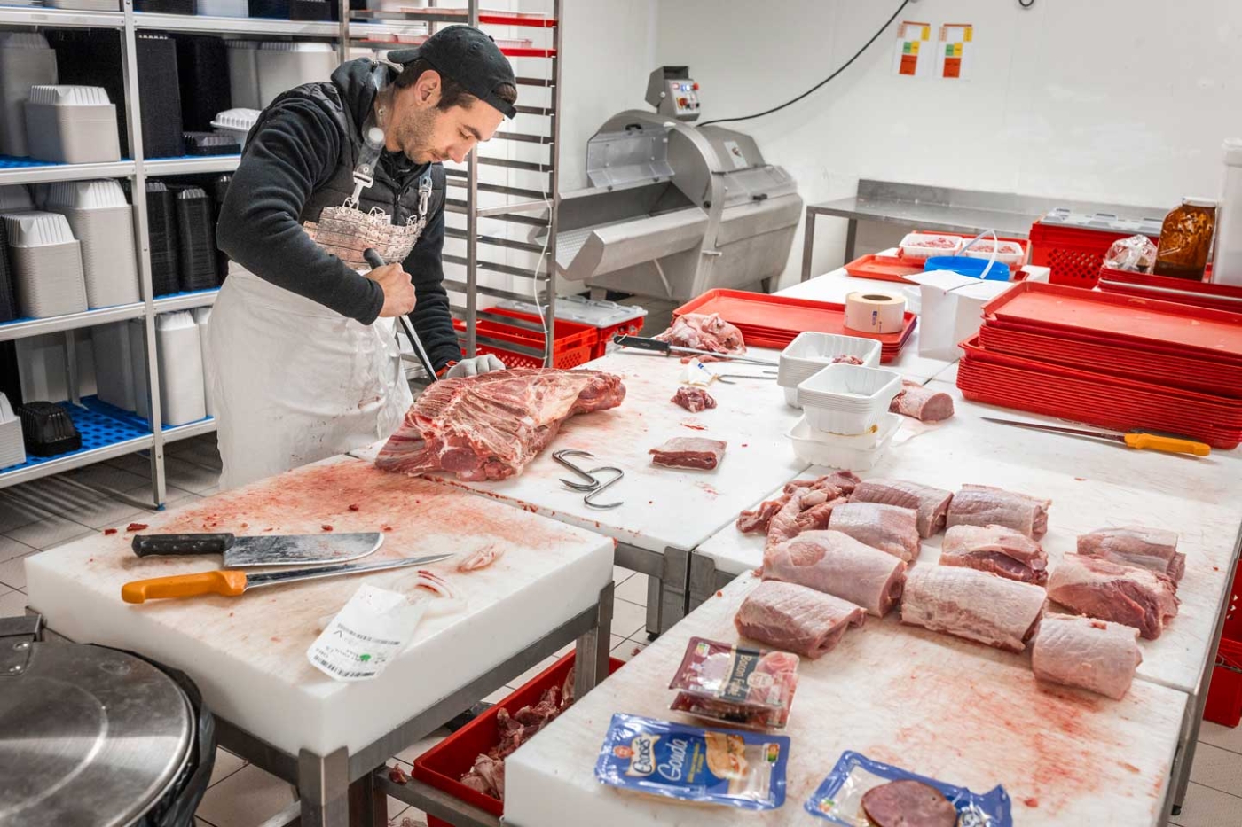 Autre secteur rénové : la boucherie. « Tout est à nouveau parti du travail réel, en associant les salariés, et d’un diagnostic ergonomique réalisé en lien avec l’ergonome du SPST », constate Romain Boucherie, contrôleur de sécurité à la Carsat Aquitaine. Les discussions se sont ici concentrées sur la hauteur des tables de travail, usées et dont les pieds avaient été rabotés au fil des années. Se posait également une question de maniabilité des tables avec le billot intégré, un boucher gaucher ayant émis le souhait d’avoir son billot du côté droit. En lien avec les équipementiers, la responsable QHSE a travaillé à l’implantation en 2024 de nouvelles tables – une par boucher –, avec une hauteur de 95 cm (10 de plus que les précédentes) et ajustables jusqu’à 105 cm. Les billots sont désormais indépendants.