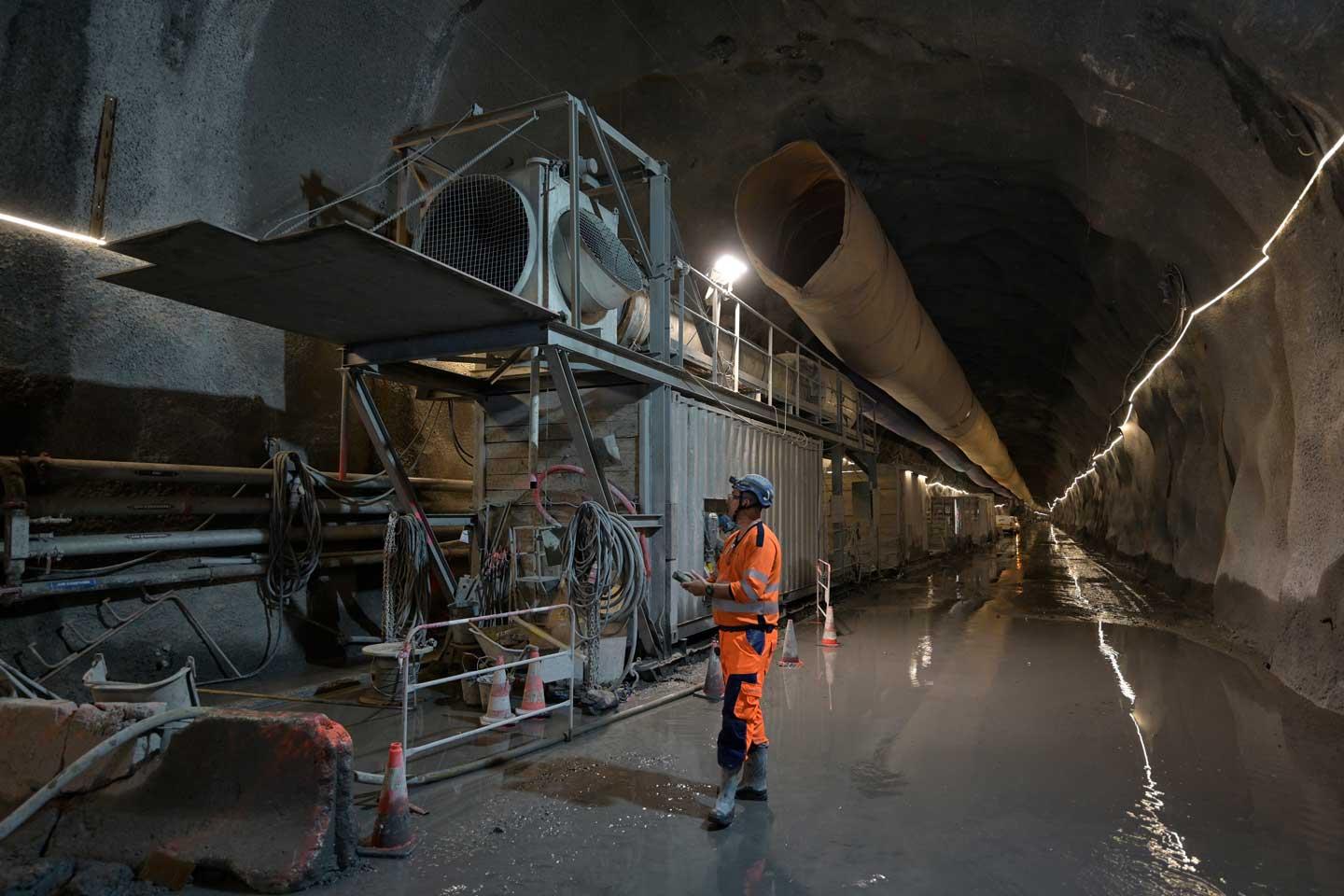 La bonne règle est que le conduit d'air aspirant soit au plus près de la source d’émission des polluants, soit une distance d’environ 10 mètres du front de taille, pour un diamètre d’excavation de 8 à 10 mètres, et l’arrivée de l’air soufflant positionnée plus en arrière de l’orifice d’aspiration. « Ce dispositif soufflant-aspirant n’est pas standard en Europe, observe Alexander Heim, directeur de projet chez Implenia Suisse, entreprise mandataire du groupement. Néanmoins, nous l’avons adopté car la prévention fait partie intégrante de notre métier et de nos missions. »