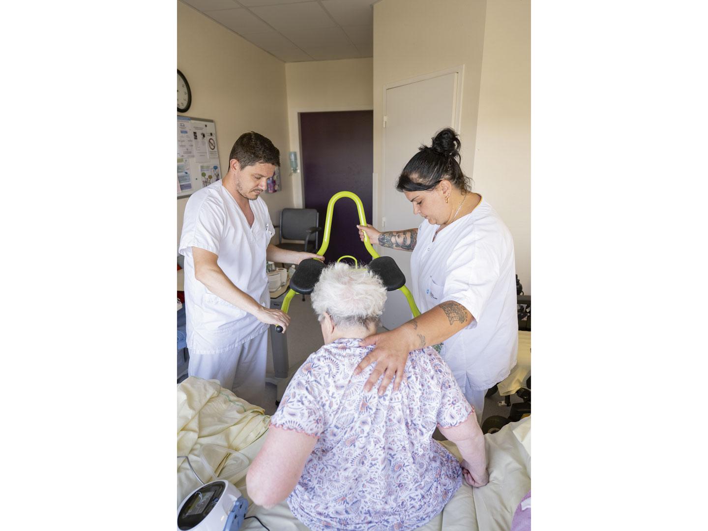 « On ne porte quasiment plus et cela nous préserve. Fini les douleurs en fin de journée », affirme Céline Leroi, aide-soignante et formatrice ALM du service. « En cas de situation particulière qui pose question sur la manière d’appliquer la démarche, nous échangeons avec Aurélie qui nous aide à faire émerger des propositions d’accompagnement », ajoute Maxime Fombertasse, un aide-soignant. Celui-ci doit justement compléter l’enseignement qu’il a reçu de l’ALM dans sa formation initiale avec une session dispensée en interne.