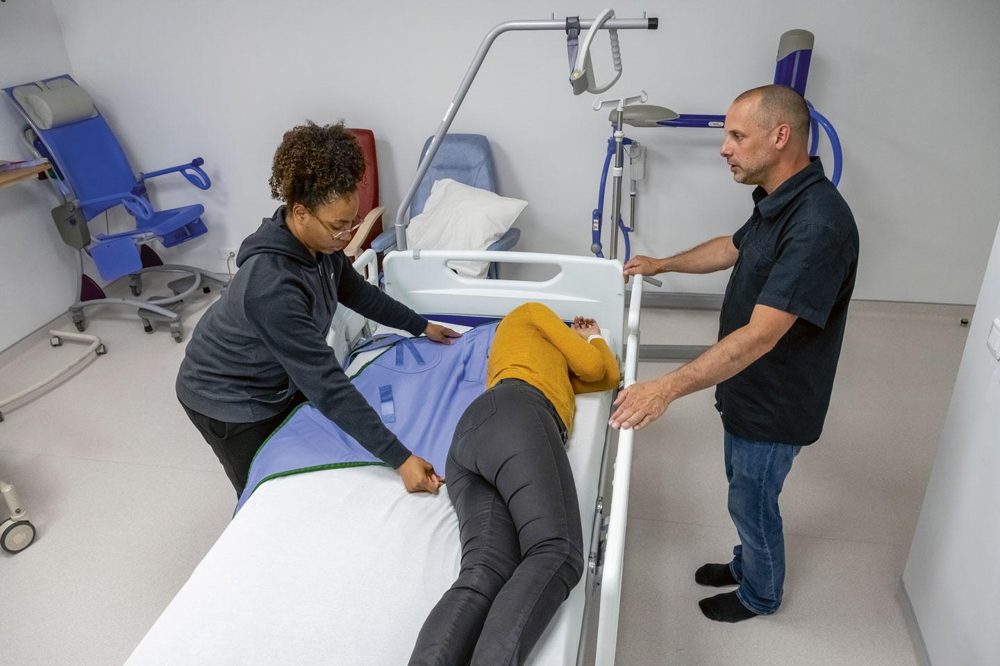 Se redresser ou se tourner dans son lit, s’asseoir dans un fauteuil ou s’en extraire, marcher jusqu’à sa salle de bain… Autant de déplacements que chacun réalise naturellement lorsqu’il est en bonne condition physique mais qui peuvent devenir complexes, voire carrément impossibles, lorsque le corps n’est plus en mesure d’effectuer certains mouvements élémentaires. C’est une réalité que connaissent bien les professionnels de la santé et de l’aide à la personne qui s’occupent de personnes malades, blessées, âgées ou porteuses de handicaps. Qu’il s’agisse de leur administrer un traitement, de les conduire en salle d’examen ou de les accompagner dans les gestes de tous les jours (repas, toilette, activités…), les infirmiers, aides-soignants et autres aides à domicile sont amenés quotidiennement à soulever, tirer, pousser, soutenir, retenir… Des ports de charge qui sont la principale cause d'accidents du travail, de maladies professionnelles et d’inaptitudes de ces travailleurs selon les chiffres de sinistralité du secteur.
