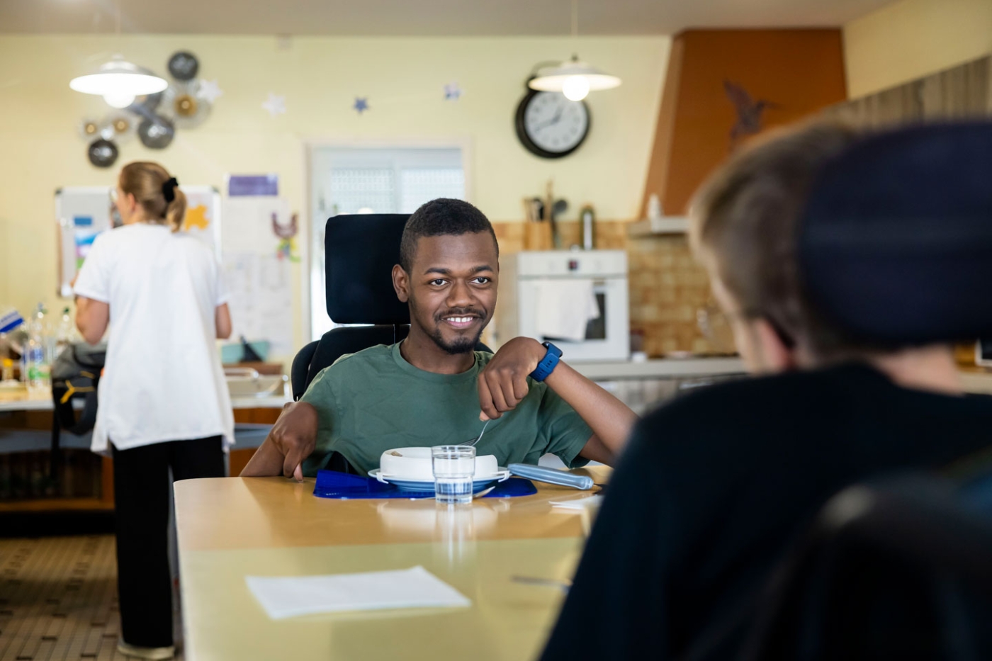 « Sans cesse, il faut verbaliser, écouter, évaluer ses capacités sur le moment, car elles peuvent évoluer », poursuit Virginie Bailly. « On me laisse faire ce que je suis en mesure de faire et j’ai repris confiance en moi, commente Devon. Ça m’aide dans le combat quotidien que je mène pour mon objectif de vie autonome. » Pour Cristelle Michaud, monitrice éducatrice, l’ALM est un outil grâce auquel « on ne fait plus à la place de ». Présente dans l’établissement depuis 35 ans, elle a vécu moult transformations. Aujourd’hui, les chambres de l’IEM sont équipées de rails en H. Des tests et investissements réguliers permettent le déploiement d’aides techniques. « C’est nécessaire, mais savoir s’en passer et les utiliser à bon escient l’est tout autant », insiste-t-elle.