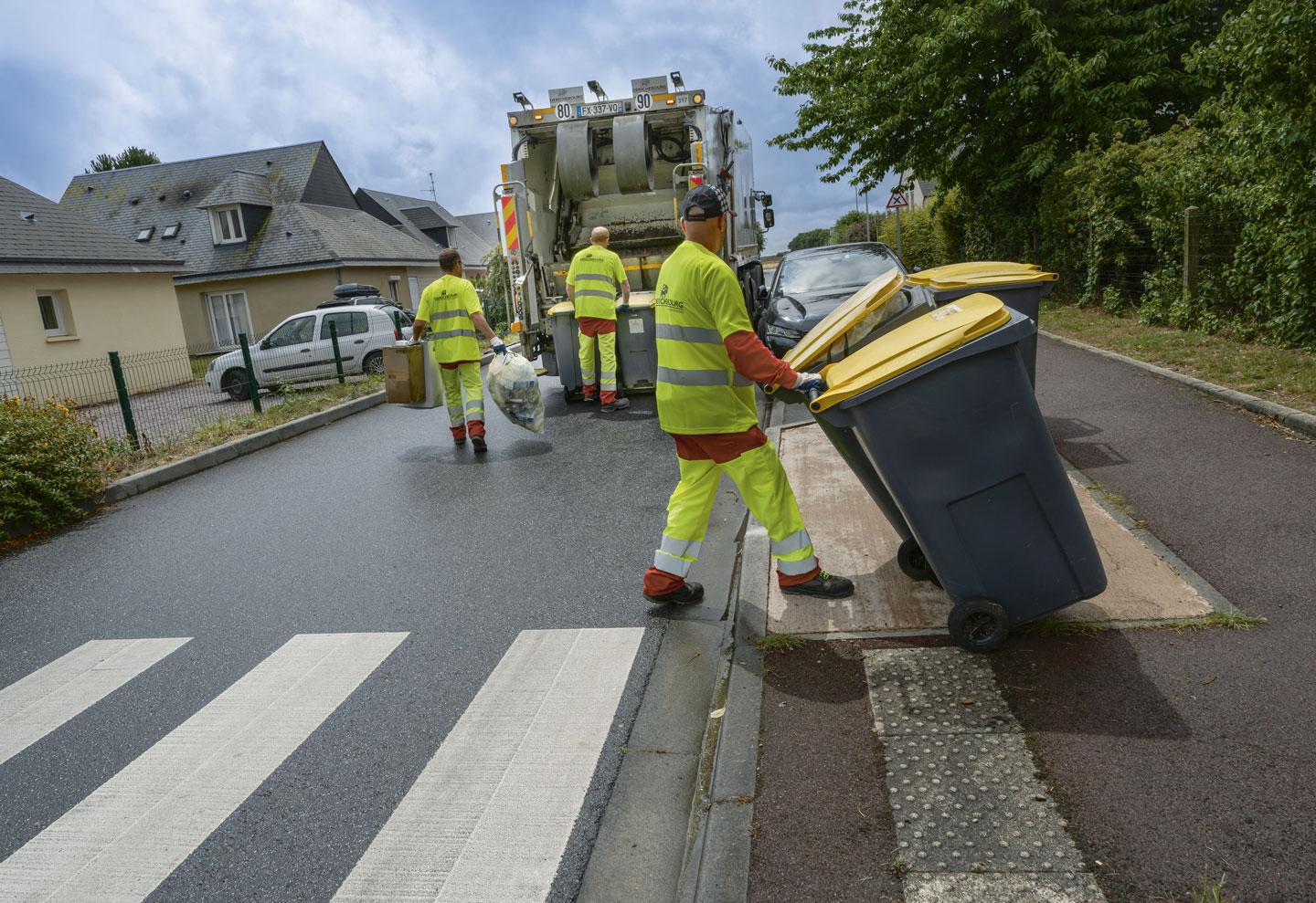 Aujourd’hui, mercredi, c’est jour de collecte sélective (poubelles jaunes) et de marchés sur le territoire de la communauté urbaine (CU) de Caen-la-mer… Les horaires de prise de service ont été adaptés pour laisser le temps aux équipes de la propreté urbaine d’intervenir. Nous avons été affectés à un équipage de l’après-midi : Ludovic James, le conducteur, accompagné de Maxime Harang et Richard Chaumont, équipiers de collecte. Tous trois font partie de l’agence Derichebourg de Caen (située à Colombelles) qui a remporté, en 2021, l’appel d’offres de collecte d’ordures ménagères de la CU.