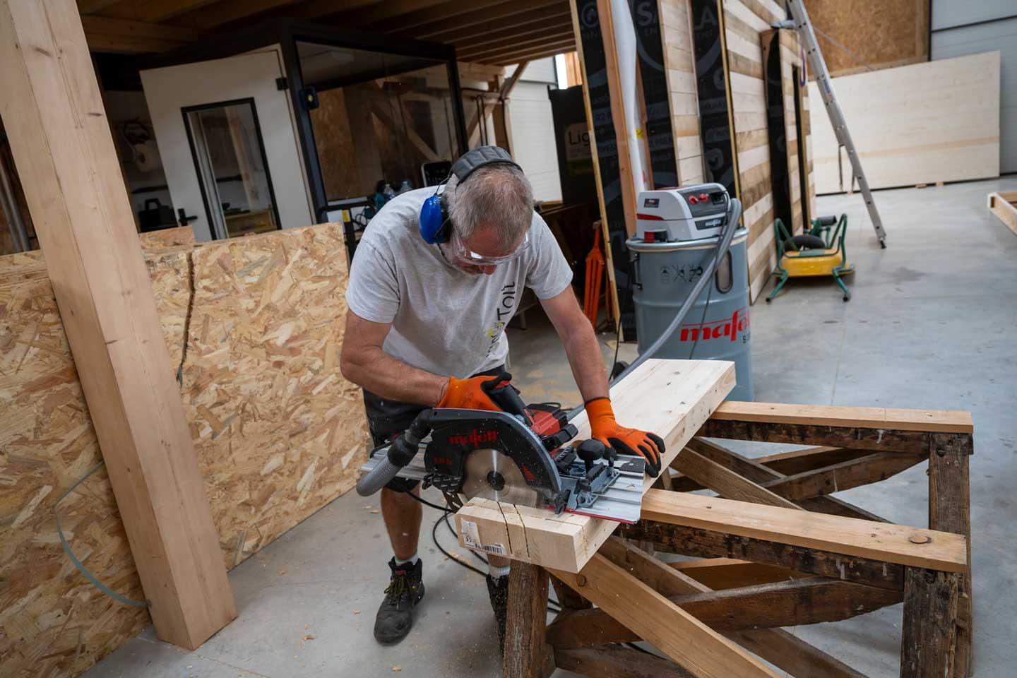 Ce jour-là, le contrôleur de sécurité rencontre Thibaut Gaillard, co-gérant de la TPE. Ils évoquent des chantiers où le risque de chute de hauteur est prédominant et où les opérateurs sont également confrontés à des risques de chutes de plain-pied, de chutes d’objets, à la manutention quotidienne de charges lourdes, au travail en extérieur ou encore à la coactivité. « L’entreprise avait conscience de la nécessité d’appréhender ces risques de façon globale », reprend Pierre-Alban Doucet, qui lui présente les possibilités d’aides financières pour accompagner des actions de prévention. Quelques années plus tard, en 2023, alors que Lignotoit envisage d’agrandir son atelier, un contrat de prévention prévoyant des investissements d’aide à la manutention, des installations de stockage, l’aspiration des poussières de bois ou encore la formation sera signé.