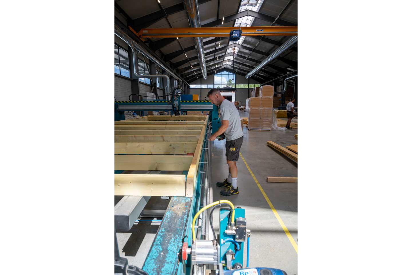 Les deux extrémités du bâtiment sont dotées de portes sectionnelles motorisées. Un bardage acoustique a été posé sur les murs et le plafond de l’atelier pour limiter les nuisances sonores. Une cabine d’aspersion pour traiter le bois après usinage, hydrofuge, insecticide, anti-termites, a également été acquise, en remplacement d’un ancien bain. Fort de cette expérience concluante et des enseignements tirés, le dirigeant planche désormais sur un projet de conception d’une nouvelle usine, dont l’ouverture est prévue courant 2027.