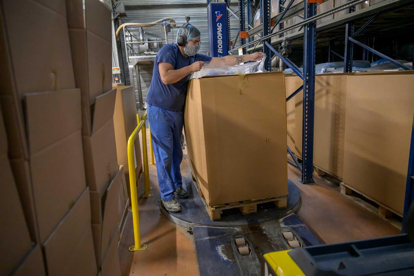 Dans le hangar, des big bags de 2 m de haut sont remplis d’environ 1 tonne d’oignons ou d’échalotes. « Leur remplissage n’est pas toujours bien fait, nous alertons fréquemment les producteurs pour qu’ils le fassent correctement afin qu’ils ne s’éventrent pas ou qu’ils ne risquent pas de se renverser », remarque le dirigeant devant l’un d’eux, légèrement déchiré. Quant à l’ail, il est livré en palox de 300 kg, des caisses en plastique facilement déplaçables. Les alliacées sont ensuite triées, nettoyées, pesées, émincées, puis passeront au four pour finir déshydratées, puis broyées sous forme de semoule ou de poudre. La purée d’ail suit un autre process, dans une salle blanche.