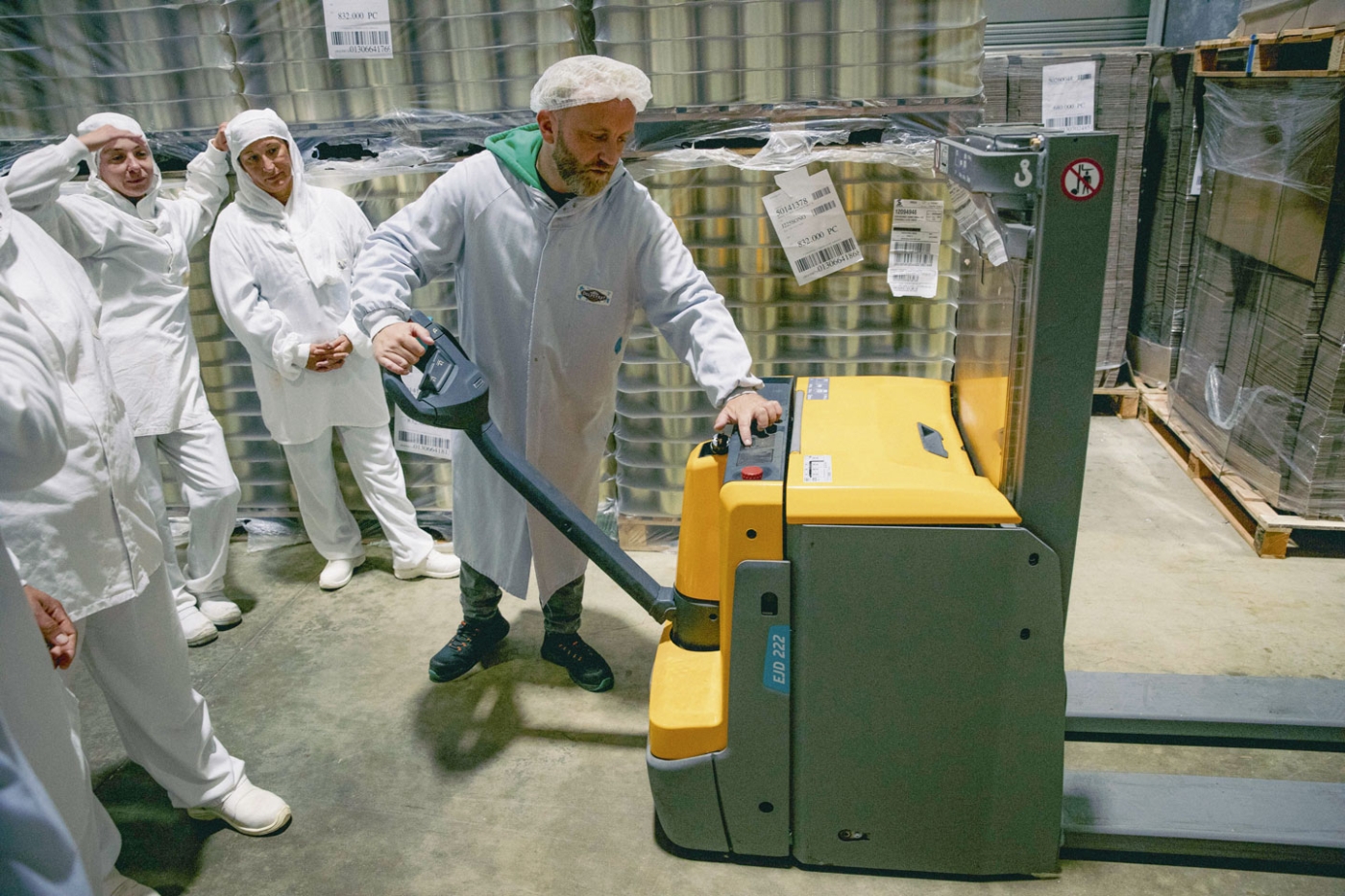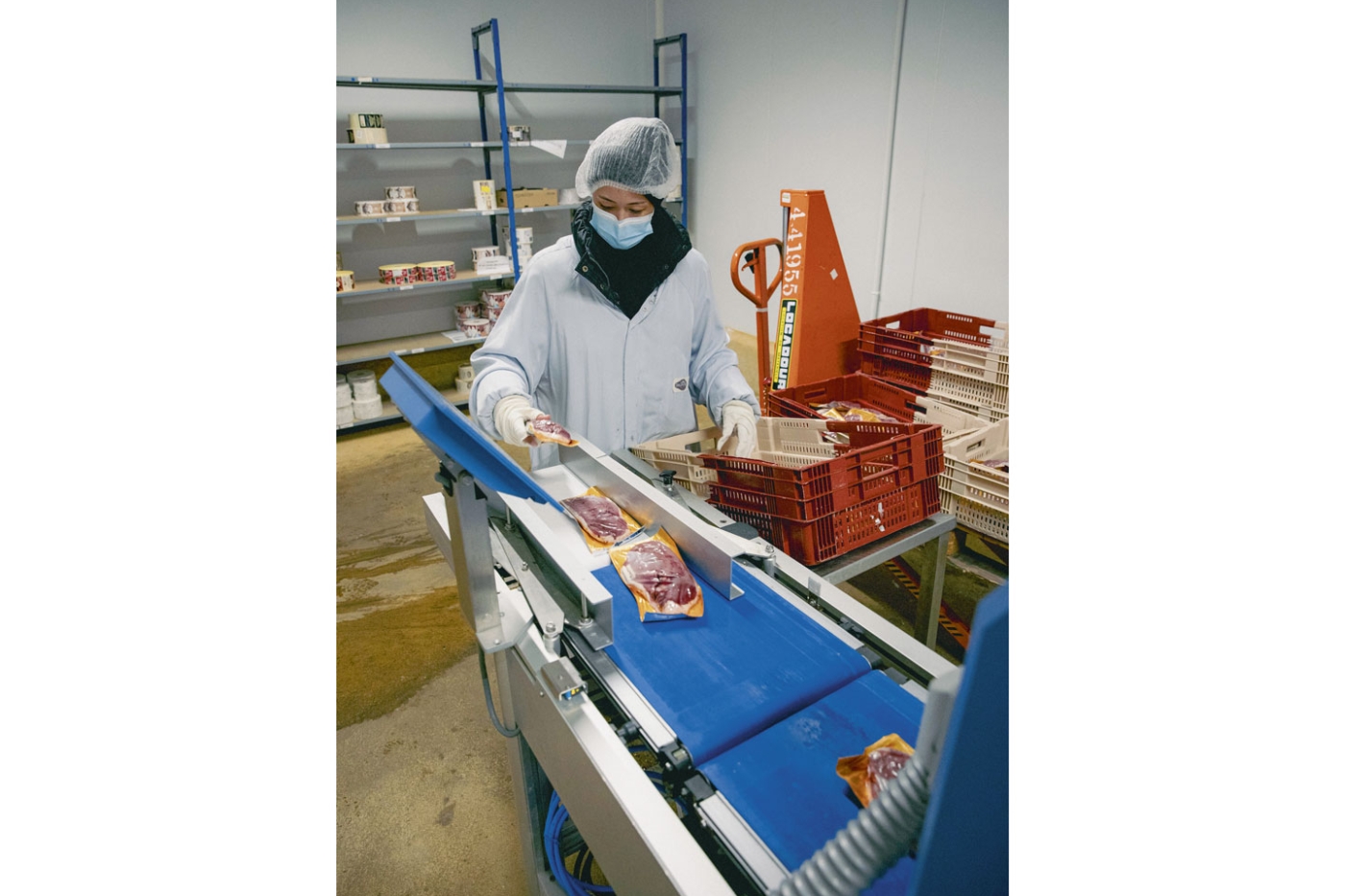 Du côté de la préparation des commandes, les opératrices avaient l’habitude d’étiqueter manuellement et quotidiennement deux tonnes de magrets dans un espace peu sécurisé, au milieu des circulations de chariots. Là aussi, l’ensemble des acteurs ont été mis autour de la table et des tests ont été réalisés avec une machine disponible. « Le travail se fait désormais dans une zone calme, plus proche des frigos, sans se courber, sans gestes répétitifs », constate Sandrine Villenave, une opératrice. Des transpalettes de mise à niveau sont utilisés pour l’alimentation de la machine et la récupération des produits.