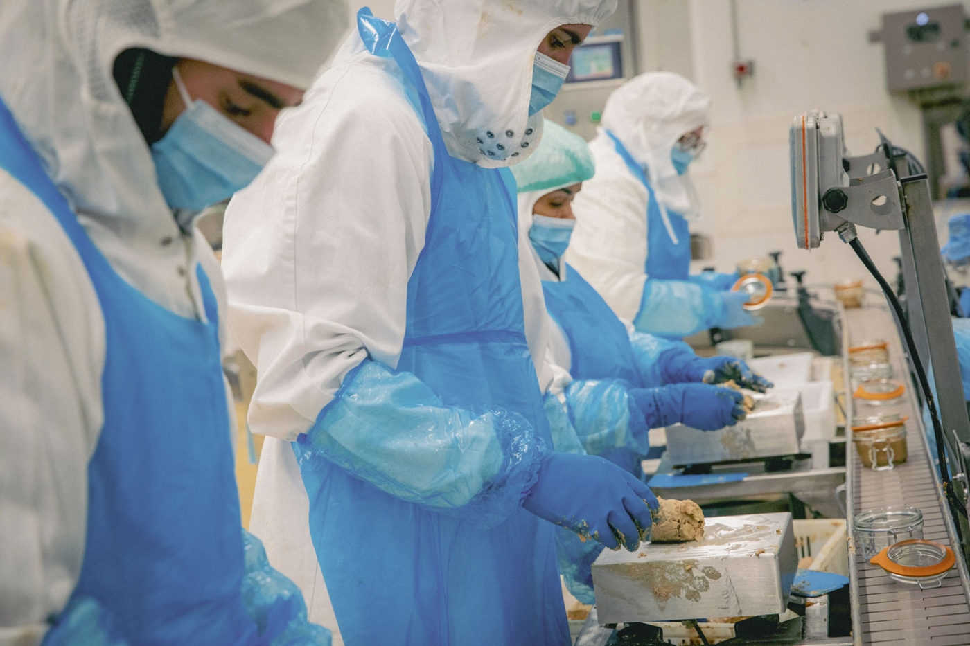 Une analyse collective de l’activité a abouti à la mise en place d’une portionneuse automatique pour alimenter la ligne, totalement réorganisée. Les opérateurs, qui font désormais face au convoyeur, récupèrent le foie gras pour le tasser dans le bocal. « Une pesée avec affichage rouge/vert supprime la charge mentale liée au contrôle du poids. Le dispositif a été testé six mois avant sa mise en place et contribue aussi à améliorer la qualité du produit puisque les foies sont mieux tassés », souligne Pauline Vanderstraeten. Malgré tout, certains ont indiqué avoir encore besoin de se pencher pour récupérer le produit. Des tablettes plus courtes seront donc prochainement intégrées à la ligne pour leur permettre de faire glisser les bocaux plutôt que de les prendre.