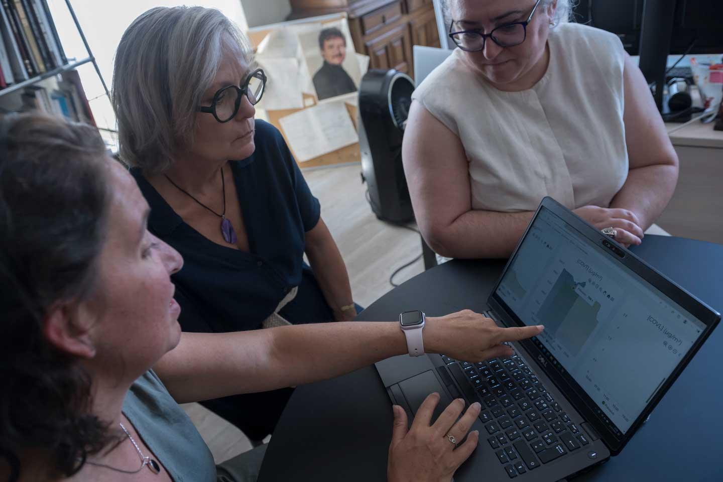 Après le déjeuner, Pauline Martin est attendue au Musée du nouveau monde, dans le centre de La Rochelle. Elle vient discuter des mesures réalisées avec les sondes connectées du service, qui permettent de relever la température, l’humidité, la qualité de l’air intérieur et la luminosité. Dix capteurs fonctionnant 24 heures sur 24 sont répartis sur les sites soumis aux plus fortes contraintes thermiques. « La semaine du 21 juin, on était à 32 degrés sous les toits », relate Mélanie Moreau, la directrice, qui avait dû fermer certaines salles, en l’expliquant au public. « Nous sommes dans un bâtiment partiellement classé dans lequel on ne fait pas ce qu’on veut, détaille-t-elle. Pour préserver nos collections, on ne peut pas ouvrir certaines fenêtres. Très vite, la chaleur monte. » Avec l’aide du service prévention et handicap, elle a envisagé le réaménagement d’espaces pour permettre aux occupants des bureaux à l’étage de se rabattre au rez-dechaussée, même s’il faut composer avec la proximité de l’accueil et les flux de visiteurs. Des ventilateurs ont été achetés. Les agents en salle sont dotés de gourdes et brumisateurs. « Un montage d’expo en pleine canicule, c’est intense », confirme Michael Dexet, régisseur technique. « Malheureusement, les solutions pérennes sont coûteuses, explique la conseillère prévention. Je transmets les relevés de mesures aux services techniques avec lesquels sont évoqués les ajustements qui pourraient être apportés. » Un travail de longue haleine.
