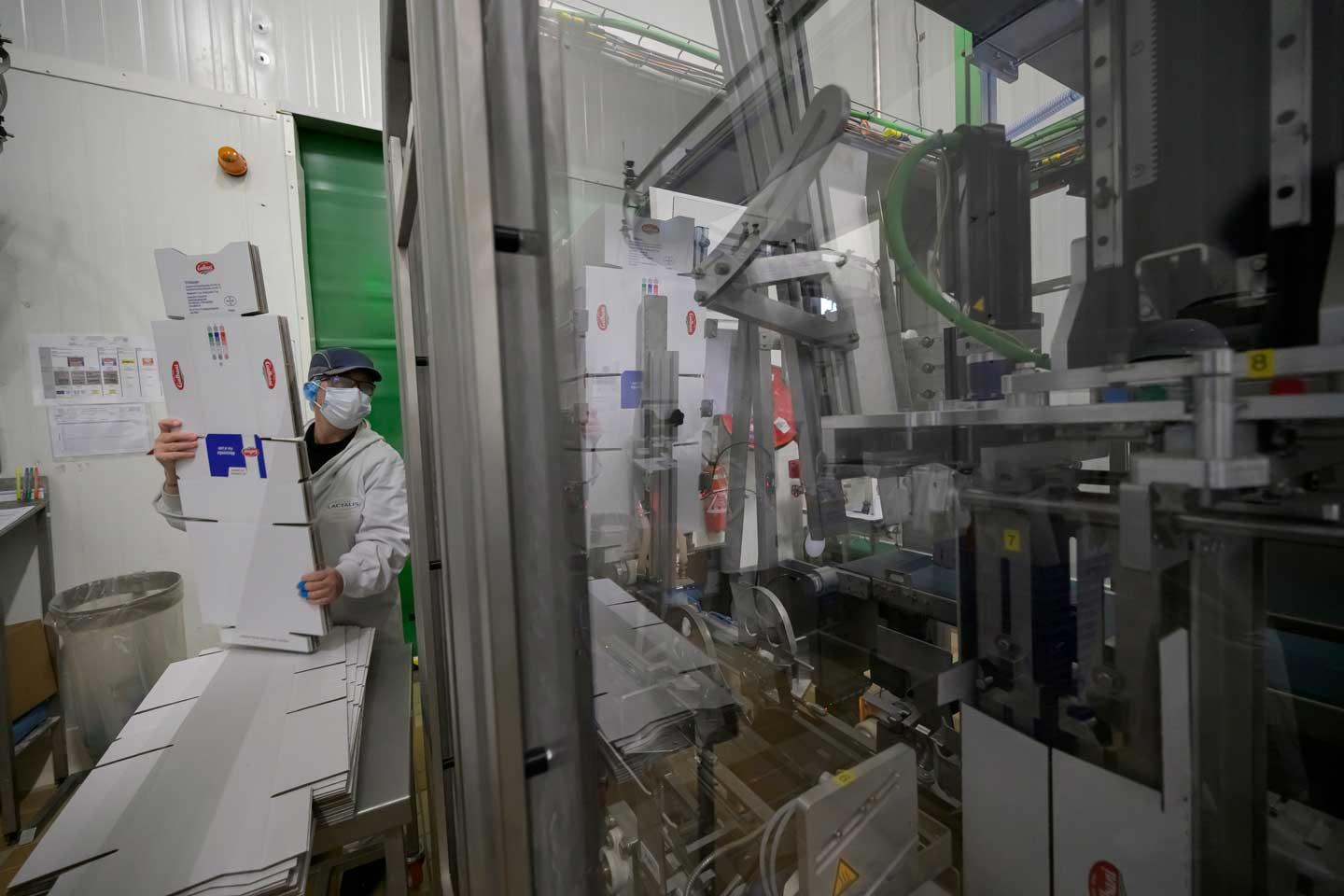 Les réflexions ont d’ailleurs commencé au sujet du poste qui précède celui de ramassage des moules et qui consiste à réassembler leurs deux parties. Les salariés doivent récupérer les « casquettes », pièces qui pressent le lait caillé, sur un convoyeur en hauteur afin de les déposer sur les moules qui défilent sur un second tapis en contrebas. Et dans le futur, d’autres groupes de travail vont se pencher sur les postes de mise en carton des différents conditionnements d’emmental, de découpe des meules en longes (pour ensuite en faire des tranches ou des mini-portions), ou encore de découpe en cubes de la mozzarella – produite par d’autres sites du groupe –, l’une des étapes pour conditionner cette spécialité transalpine sous forme râpée.