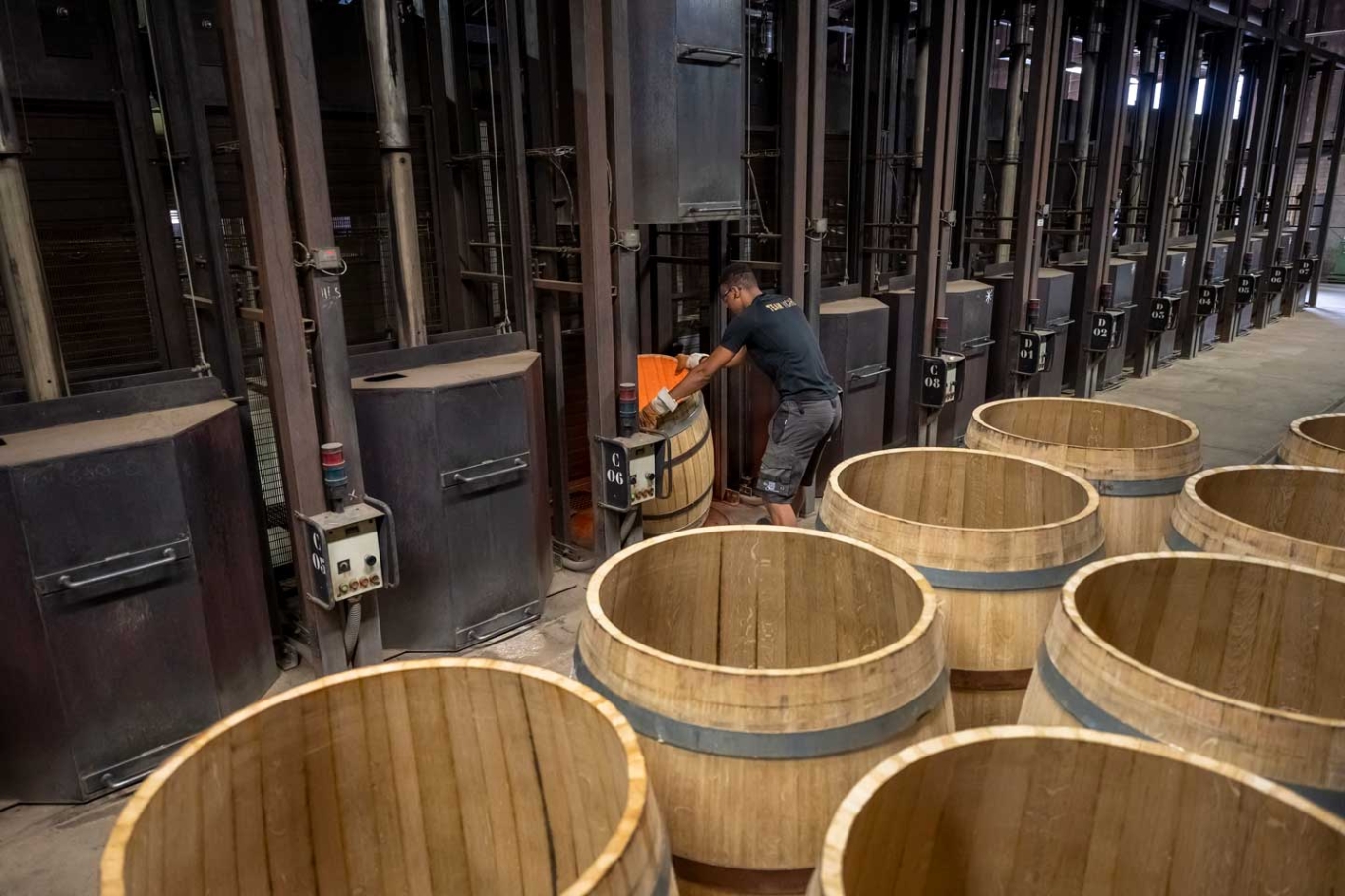 « Pour ma part, confirme un opérateur alors que nous sommes au mois d’août, je ne souffre pas de la chaleur, la ventilation est efficace et les cloches nous protègent plutôt bien des rayonnements. » « Lorsque nous sommes en période de canicule, nous avançons la prise de poste à 7 heures », précise Stéphane Pontcharraud, ancien membre du CSE. La chauffe dure une trentaine de minutes par barrique. À mi-chauffe, l’opérateur retourne la barrique pour que la chauffe soit homogène, en soulevant la plaque métallique équilibrée grâce à un contrepoids, une étape qui devrait à terme être automatisée.