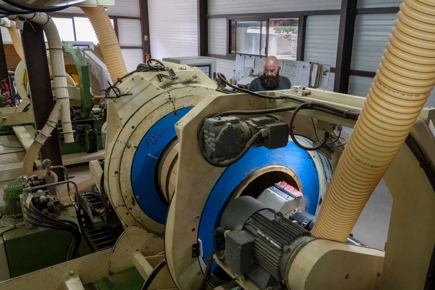 Ces merrains sècheront à l’extérieur, exposés aux intempéries, sur un parc de 8 hectares, pendant 24 à 36 mois, exceptionnellement jusqu’à 48 mois, selon les propriétés attendues. Une fois « prêts », ils sont triés par un opérateur pour éliminer ceux qui sont trop courbés. Ensuite, un tonnelier les usine pour les transformer en douelles. C’est là qu’intervient une innovation portée par Jean-Charles Vicard : doter les douelles d’un système d’emboîtement, avec rainure et languette, un peu comme les parquets prêts à poser : « Il s’agit de les écourter, les évider, les incurver – le dolage – et de créer des rainures pour pouvoir les emboîter entre elles. Cela réduit très nettement le nombre de coups de marteaux donnés par le tonnelier lors de l’assemblage. »