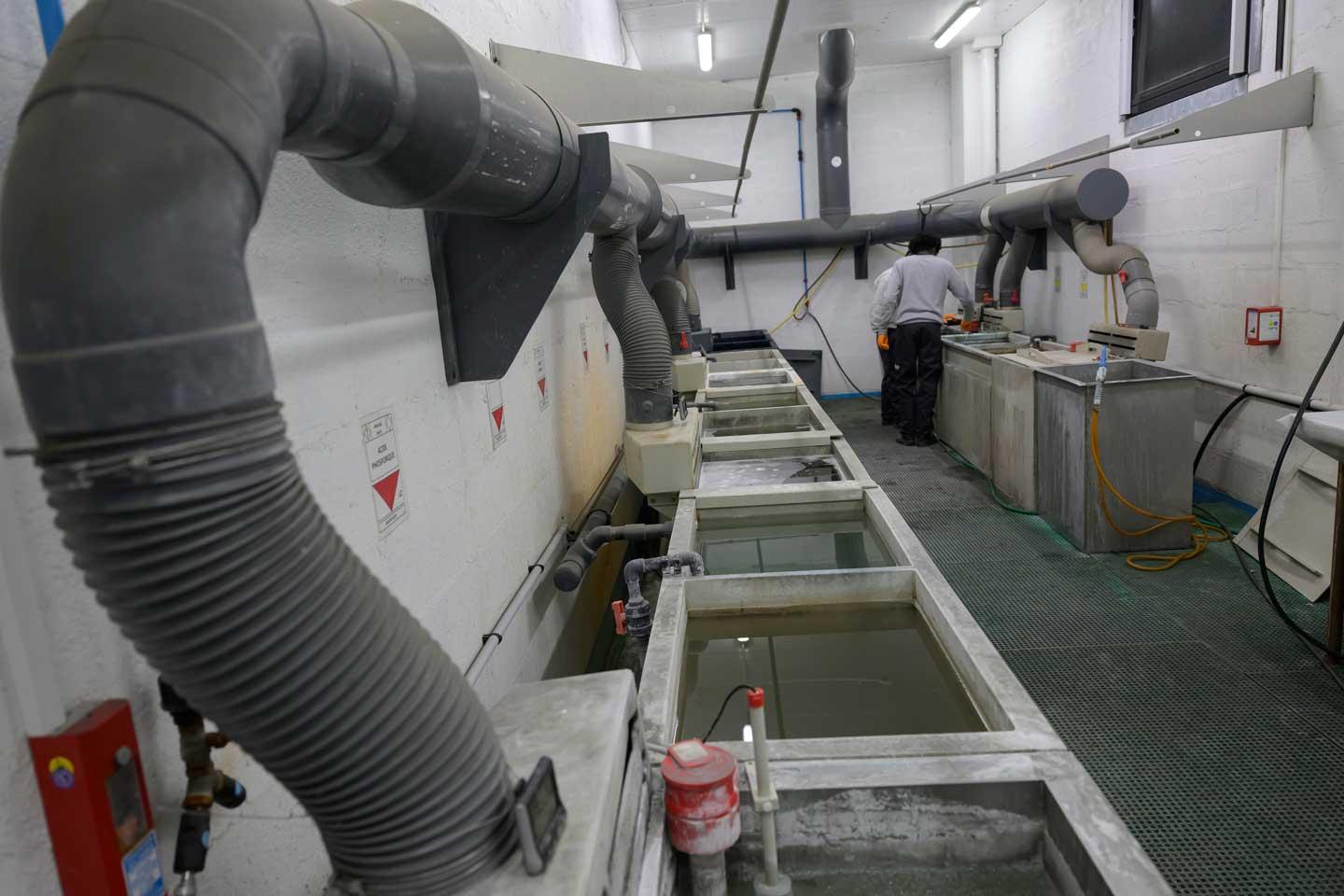 Pour l’heure, c’est l’automatisation du traitement de surface qui est en cours. Le cahier des charges, rédigé avec l’aide du Centre technique des industries mécaniques (Cetim), précise les caractéristiques des machines qui plongeront les pièces dans les bains dégraissants, décapants, de traitement et de rinçage. Actuellement, il est entre les mains de différents fabricants. « En fonction du coût, il faudra peut-être attendre un peu », regrette Romain Serra. « Un contrat de prévention sera certainement possible, intervient Estelle Koeth. Nous en discuterons quand vous aurez tous les chiffres en main. » Mais d’ores et déjà, un premier bain a été changé en décembre dernier. Le prestataire a été sélectionné à la fois pour sa capacité à réaliser cette opération et pour son aptitude à travailler en sécurité. L’idée n’étant pas de faire peser le risque sur une autre entreprise.