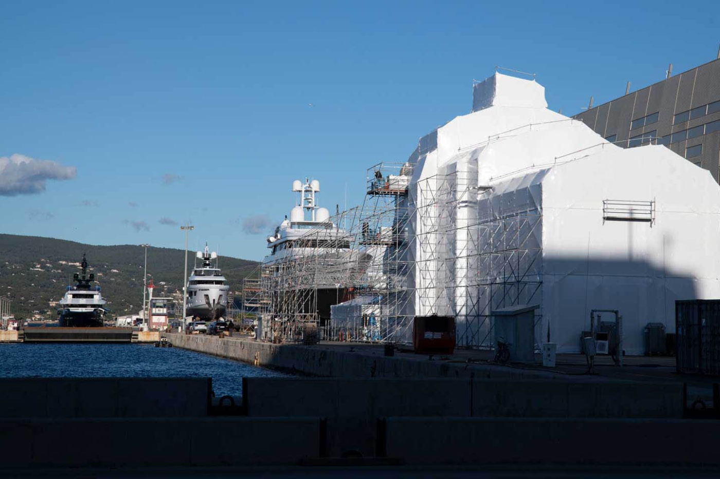 On ne peut pas les rater. Ils sont là, à quai ou en cale sèche, parfois entourés d’échafaudages ou totalement emballés, à l’abri des curieux et des intempéries, imposants, majestueux, avec leurs 10, 20, 30 ou 40 m de long, voire plus. Entièrement refaits ou juste repeints, ces méga-yatchs ressortiront flambant neufs des locaux de MB92, situés au sein des chantiers navals du site de La Ciotat, géré par La Ciotat Shipyard, une société publique locale. Avec ses 1 600 m de quais et ses 12 000 m2 de cale sèche, MB92 y occupe une place de choix.