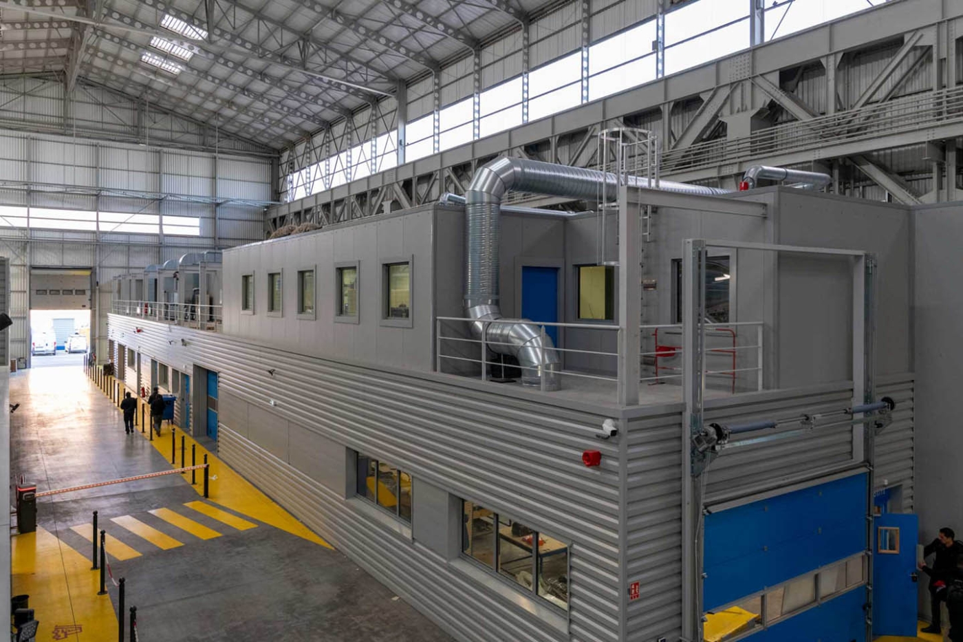 À proximité se trouve le magasin. Il a une capacité de stockage énorme, avec ses centaines de pièces destinées aux clients ou pour parer à tout type de demande. Dans les zones de stockage, les allées de circulation font trois mètres de large, la majorité des pièces sont stockées sur des racks dont les pieds sont protégés des éventuels heurts de chariots, et l’éclairage naturel a été privilégié. « Quand l’éclairage naturel était techniquement impossible, un éclairage de second jour a été mis en place, avec des surfaces vitrées donnant sur la vaste allée centrale de la nef », précise Thierry Moussy.