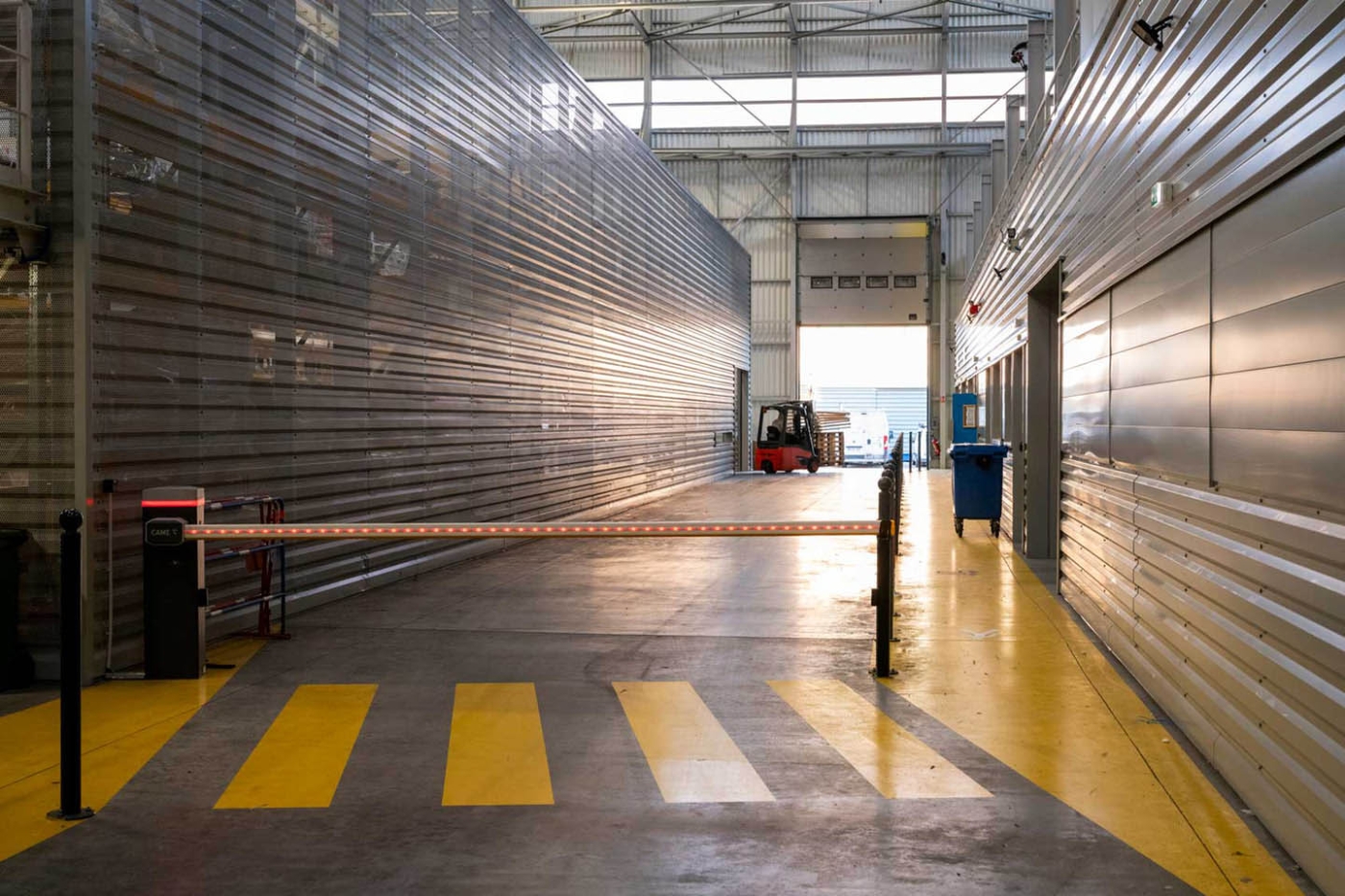 Premier point abordé : les circulations. Les allées créées dans la nef sont larges pour permettre aux véhicules de circuler. Des potelets isolent les cheminements piétons, tandis qu’une barrière équipée de leds (vertes ou rouges) autorise ou non les piétons à traverser. Au sol, de la résine époxy et des marquages facilitent les déplacements. Juste sous le toit (la hauteur de la nef est de 24 m), des vitres laissent passer un peu de lumière. « Nous avons dû mettre ce type de vitres, pour respecter les exigences des Bâtiments de France – car pour toute modification d’apparence extérieure des nefs, il faut obtenir leur accord -, mais elles sont opaques et laissent très peu passer la lumière », regrette Pierre David.
