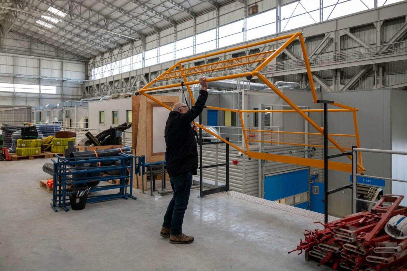 L’atelier mécanique occupe un petit emplacement de la nef C, mais il va bientôt rejoindre la nef B dans sa partie sud et bénéficiera du double de surface. Il sera équipé d’un pont roulant d’une capacité de trois tonnes, un matériel que le responsable attend avec impatience. Mais pour l’heure, dans la nef C, les opérations de désamiantage touchent à leur fin. Un travail colossal qui nécessite de poser une double bâche et un filet sous ses toits afin d’enlever les tuiles en fibrociment amianté de ce bâtiment de 33 m de haut. « À terme, on voudrait pouvoir y faire entrer jusqu’à cinq voire six yachts afin d’intervenir à l’abri des intempéries », remarque Mathieu Bauden. Mais avant, le sol devra être recouvert d’une dalle de béton pour faciliter les déplacements des chariots.