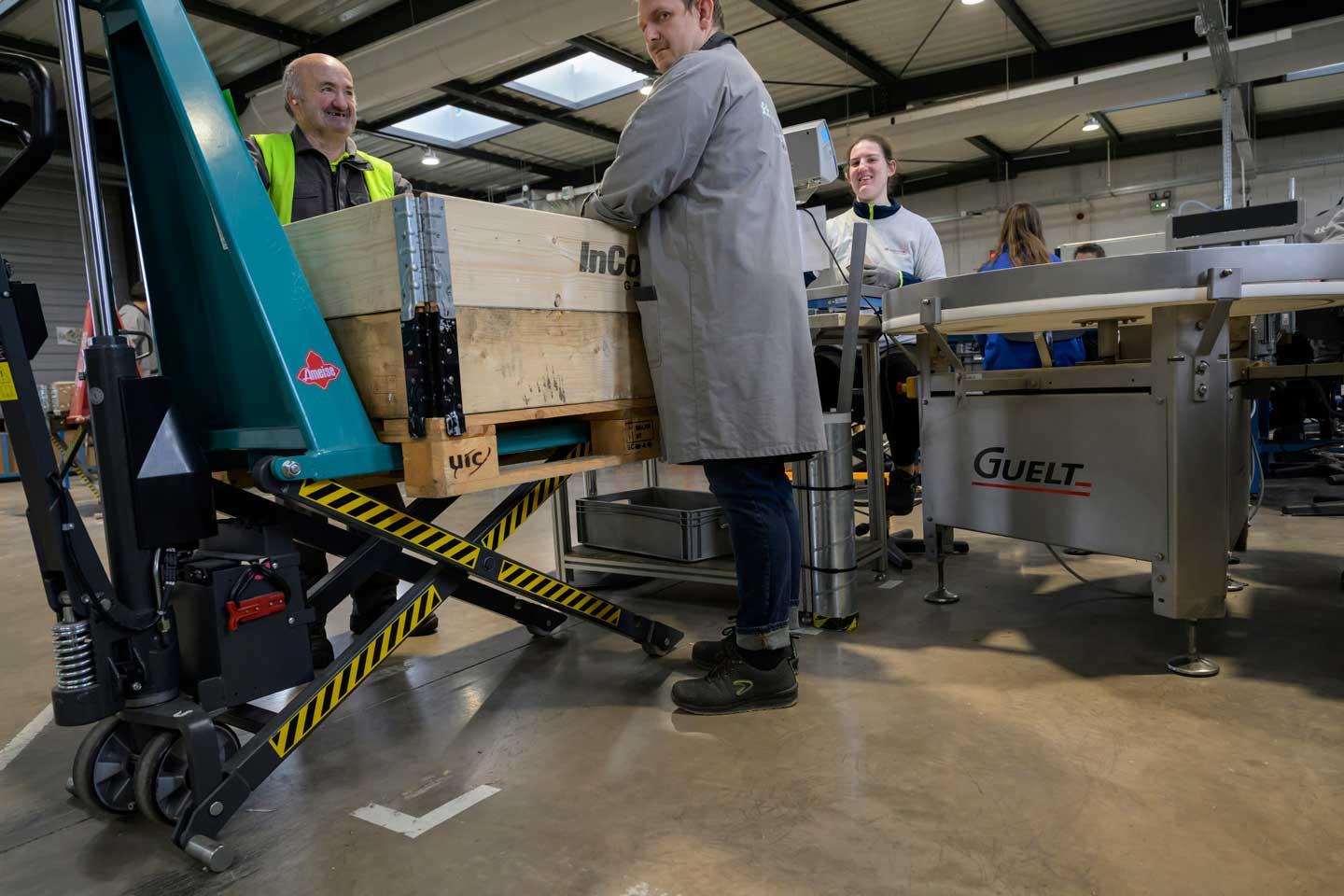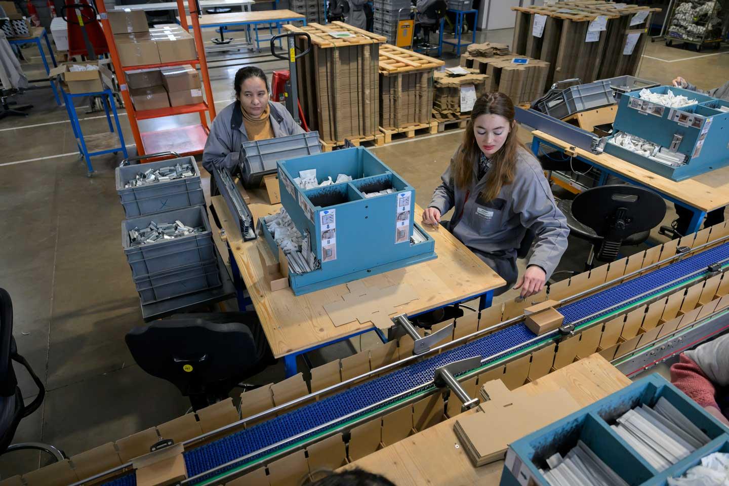 « Nous avons acquis, il y a deux ans, une machine pour former les cartons, ce qui limite les gestes répétitifs, indique Thibauld Mongin, responsable technique du site. Les travailleurs n’ont plus qu’à remplir les boîtes, les fermer et les reposer sur le convoyeur. » À l’extrémité de la ligne, les balances, utilisées pour s’assurer de la bonne composition des kits, n’émettent plus les bips qui dégradaient l’ambiance sonore de l’atelier. Le code couleur qui s’affiche sur les écrans, placés à hauteur des yeux pour plus de confort, les remplace avantageusement. « Quant à la flotte de tirepalettes haute levée qui acheminent les caisses vers l’expédition des kits finalisés, elle est en cours de remplacement, renchérit Claudie Viteaux, responsable d’atelier. Nous passons à des modèles électriques qui soulèvent la charge par simple pression d’un bouton au lieu de devoir pomper avec le timon. »